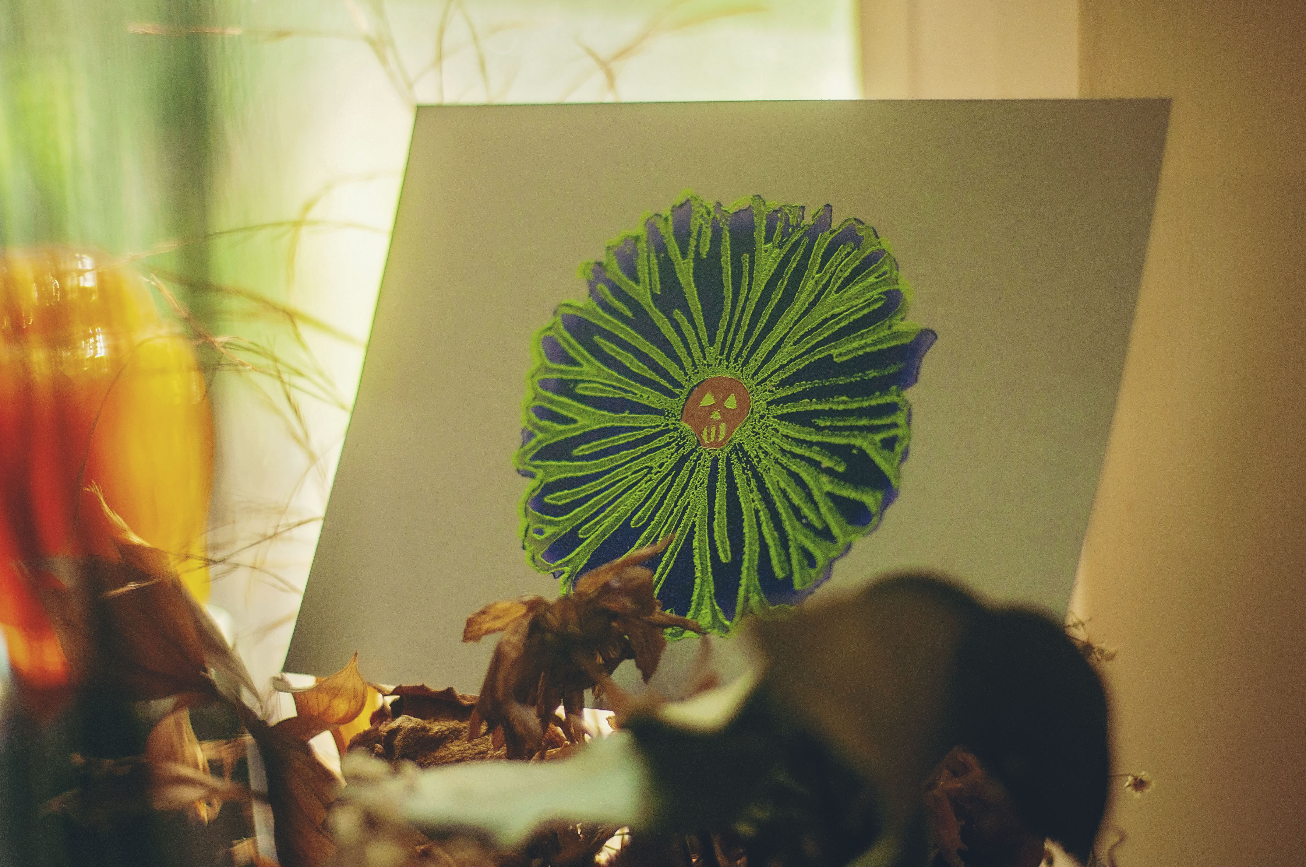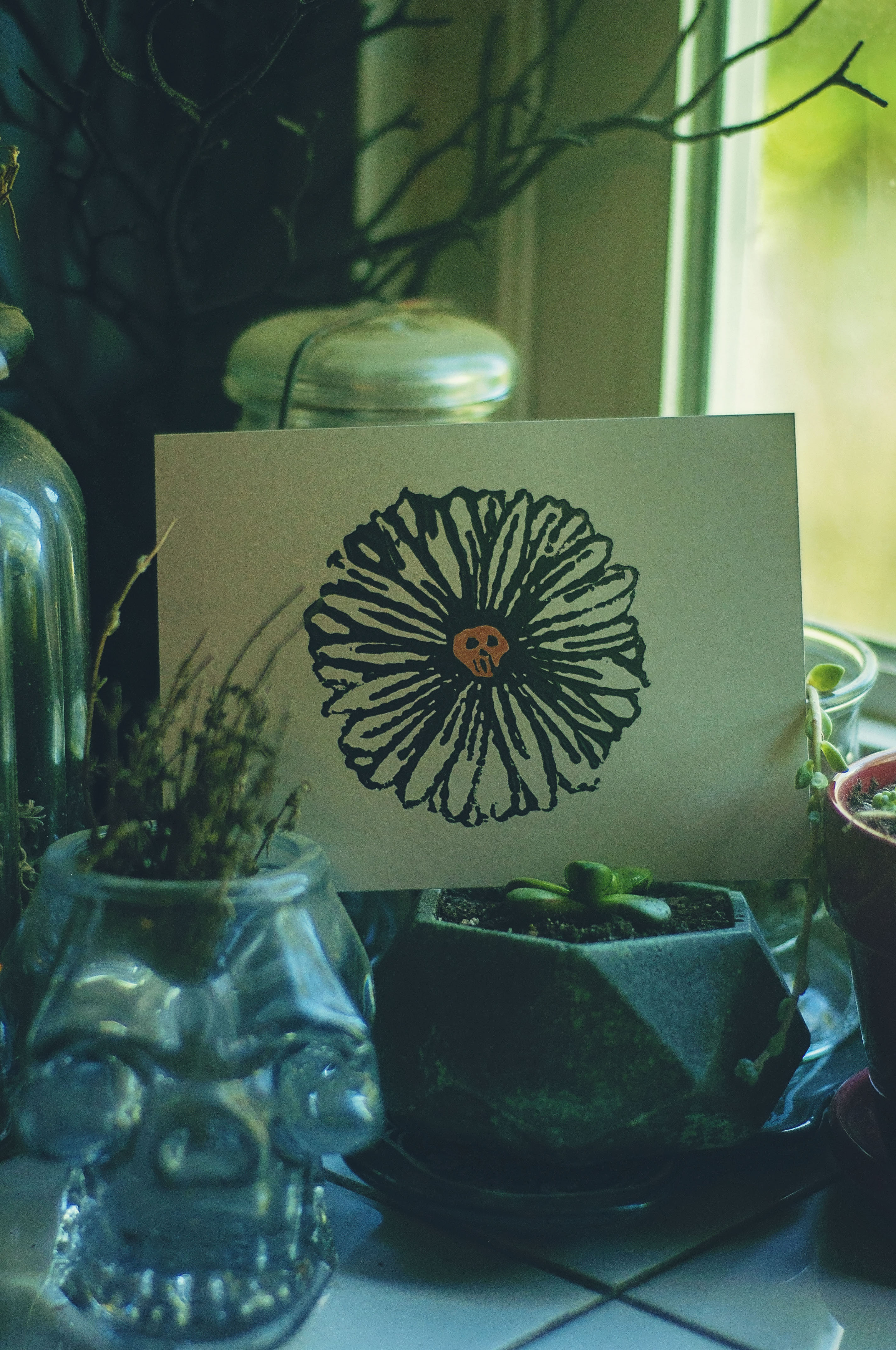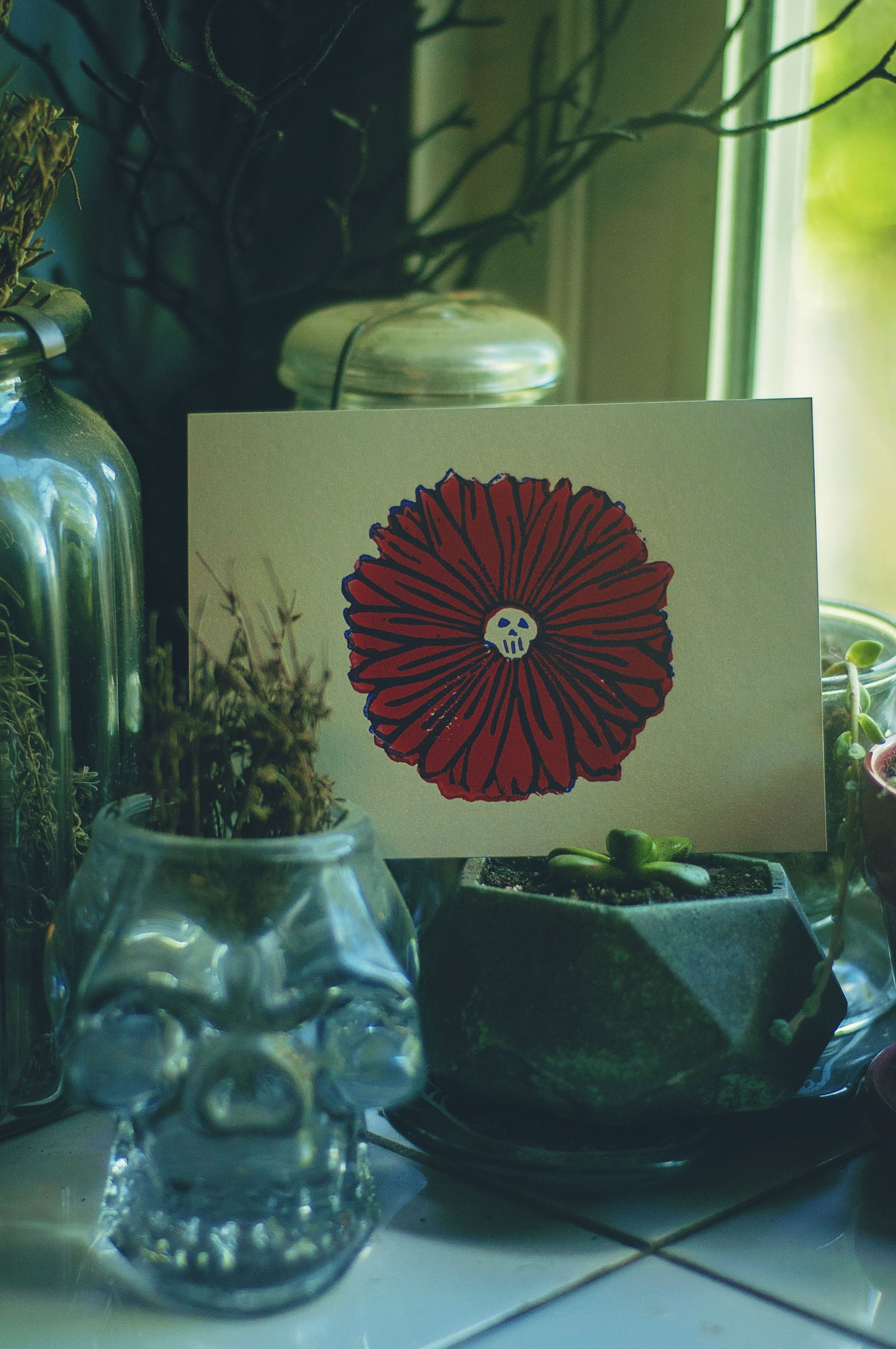 Skull Daisy Art Print on Silver Shimmer